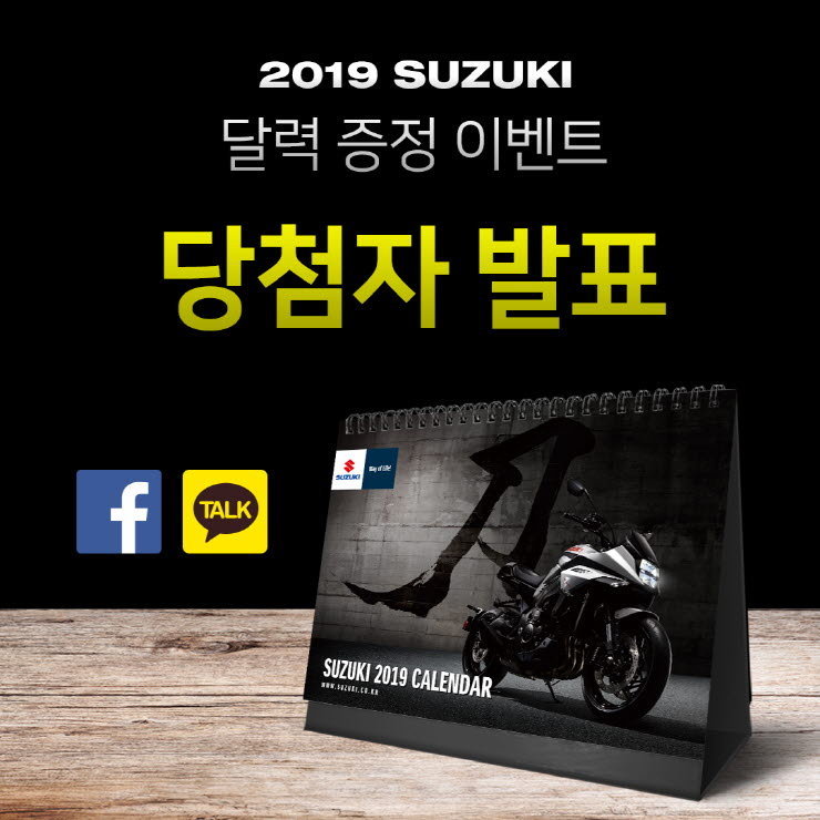 달력 당첨자 명단은 스즈키코리아 페이스북에서 확인하실 수 있습니다.