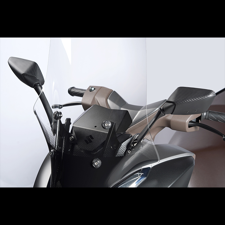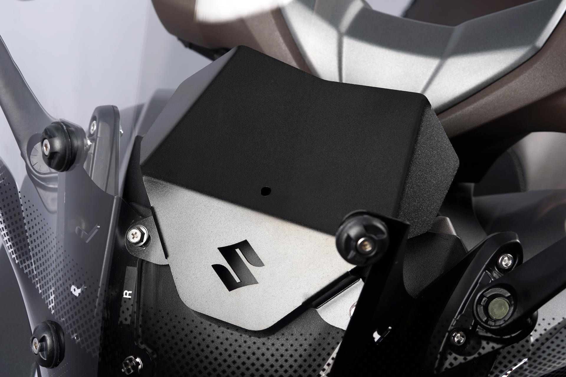 스즈키 로고가 각인된 메타바이져는 스포티하고 터프한 인상을 더해주며,